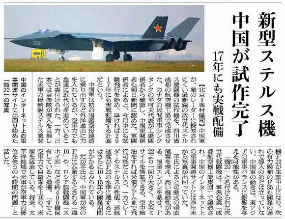 美國:解放軍殲-20隱形戰機曝光并非泄密(圖)