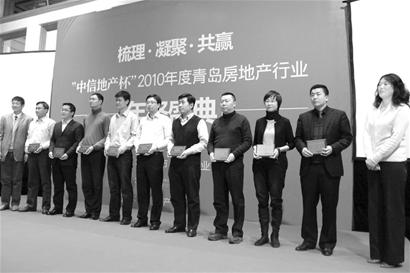 ????1月8日香格里拉大飯店一樓宴會大廳高朋滿座。由青島市房地產業協會主辦、青島房地產經理人俱樂部承辦、中信地產青島投資有限公司協辦的以 “梳理·凝聚·共贏”為主題的“中信地產杯”2010年度青島房地產行業年終盛典活動如期舉辦,這是一場梳理2010年青島房地產市場脈絡、引導市場朝著更加持續穩定健康的方向發展的行業盛會。