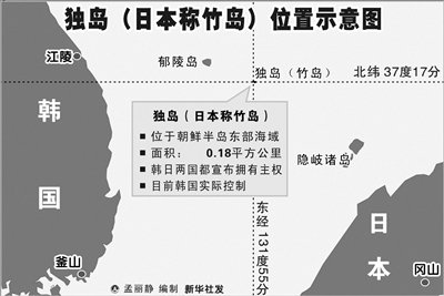 ????“獨島”位于朝鮮半島東部海域,面積0.18平方公里,由韓國實際控制。韓日都宣布對這座島擁有主權。