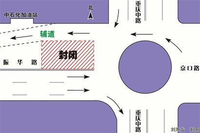 ????昨天上午,記者趕到了振華路與重慶中路路口處。這個路口以西到振華路加油站處,200米的路段上東向西一側半封閉施工,工人正在忙著設置圍擋,施工路段占據了兩排車道。施工路段以北是華中蔬菜批發市場,臨近春節,不少市民開車前去購物,再加上從京口路、重慶中路、黑龍江北路來的車輛,三股車流一下子涌到了施工的振華路上,造成了很大的壓力。