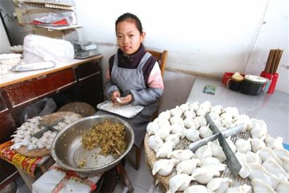 昨天下午,記者在水餃店里見到了正在包水餃的盛如瑾。“這兩天放假了,正好來包餃子,多準備一點好讓大家吃飽了。”盛如瑾告訴記者,她自己已經(jīng)包了500多個了,爭取在小年前親手包出1000個水餃來。她說,這兩天大家也都非常關注她,她所在的福州路小學全體師生給她捐了兩萬多元錢,昨天一名30多歲的叔叔看到早報的報道后,專門開車來他們店里扔下1000元錢就走了。這些好心人給他們家的幫助讓她覺得要好好地感謝大家。(記者 孫啟孟 攝影報道)