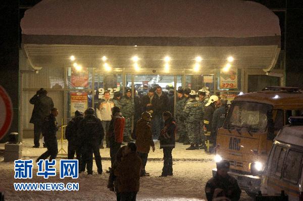 1月25日,在俄羅斯圣彼得堡,當地警察和救援人員在一家發生屋頂塌陷事故的折扣超市門口忙碌。新華社/路透