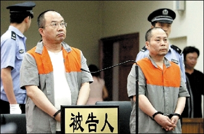 被告人董躍進右、馬連龍在法庭受審。資料圖片 本報記者 歐陽曉菲攝