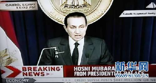 新華網(wǎng)北京2月11日電 埃及副總統(tǒng)蘇萊曼11日通過國(guó)家電視臺(tái)宣布,穆巴拉克已經(jīng)辭去總統(tǒng)職務(wù),并將權(quán)力移交給軍方。