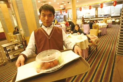 春節(jié)剛過,市區(qū)不少飯店依然大門緊閉,一些比較成規(guī)模的飯店也是剛剛結(jié)束休假,開始營業(yè)。昨天記者以服務(wù)生身份在我市兩家酒店應(yīng)聘并工作了一天,發(fā)現(xiàn)酒店用工荒嚴(yán)重,而且客人就餐時浪費嚴(yán)重。