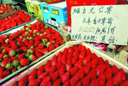 ????現在市場上出售的不少草莓都是用含有激素的草莓催熟的,城陽一位種草莓的行家昨天告訴記者,這種催熟的草莓在青島較少,多在煙臺龍口等地區。“草莓有大棚種的,也有大田草莓,大田草莓一般在七八月份成熟,采摘期較短,也就是20到30天,而大棚草莓一般能從12月底摘到來年的5月份。這位行家稱,催熟草莓用的是含激素類的農藥,一般在草莓果實快成熟時使用,使用目的是為了果大。 “催熟的草莓果實比沒催熟的要大,從外觀看和沒用農藥的沒差別,但是果實里面不同,正常生長的草莓果肉緊實,而催熟的草莓口感較差,果肉像棉絮一樣。 ”