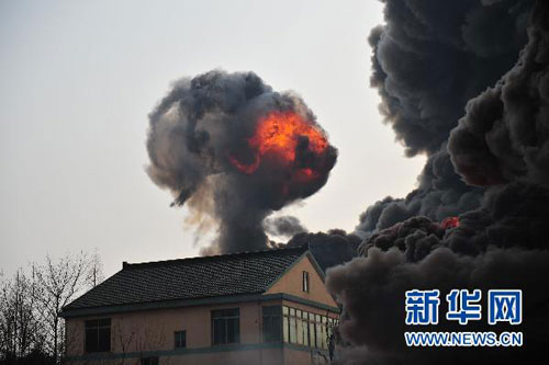 ??? 今天下午2時左右,無錫新區后宅街道全立化工有限公司某化工廠發生爆炸,引發現場濃煙滾滾,目前無人員傷亡,火勢已得到控制。