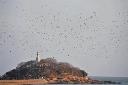 記者聞訊趕到現場看到,數千只海鷗成群結隊地繞著小青島上空盤旋,不時做出統一的動作,場面十分壯觀。在棧橋邊賣海鷗食的王女士告訴記者,一次性出現幾千只海鷗的場景非常少見。(湯臻 德銀 攝影報道)