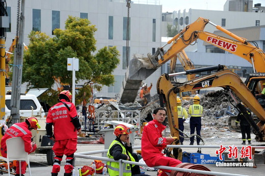????2011年2月26日,新西蘭克萊斯特徹奇,中國(guó)救援隊(duì)在CTV大樓展開救援工作。除廢墟清理工作外,中國(guó)救援隊(duì)還將利用生命探測(cè)設(shè)備搜尋幸存者。