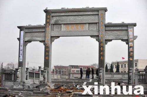 ????“中國網事”記者27日趕赴前川街火廟村,這個異常顯眼的墓園恰在村委會正對面,現場幾個農民在向外運沙,漢白玉浮雕裝飾被移到路邊,花崗巖臺階、門樓已經被鏟掉部分。上午11時左右,村里調來挖掘機,十多分鐘后,墓園被整體推平。