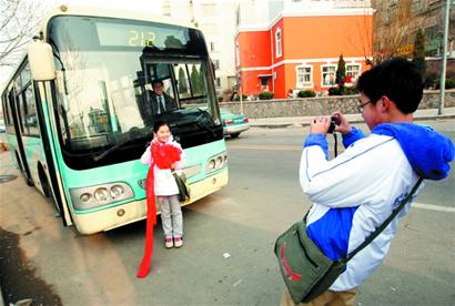 ????更令人高興的是,學生專線配備的司機都是公交集團最優秀的駕駛員,車廂里寬敞整潔,玻璃擦得錚亮,絲綢的大紅花戴在車頭、車窗上醒目地擺著學生專車的牌子。看著就讓人高興。