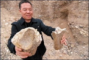 李先生展示他挖掘出的大象化石。本報通訊員 楊波 攝