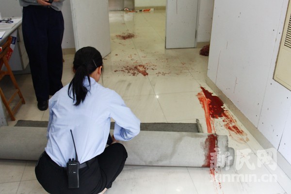 血跡斑斑。 新民網記者蕭君瑋 新茂大廈現場回傳