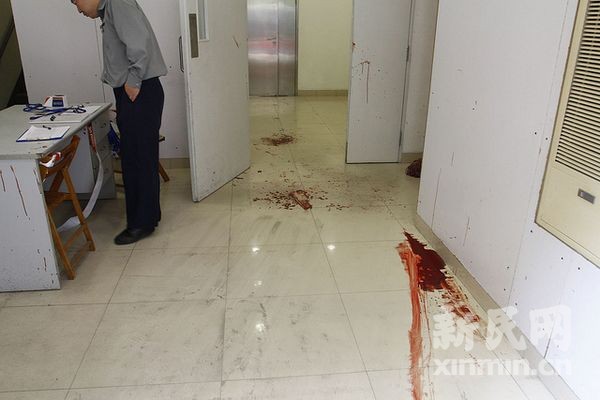 地上滿是血跡。新民網(wǎng)蕭君瑋 太倉路回傳