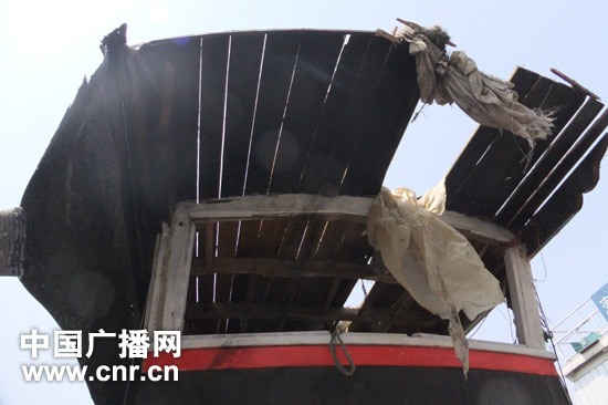 被撞的漁船冀昌漁5056號殘破的船頂(中國之聲記者陳俊杰/攝)