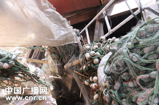 漁船冀昌漁5056號甲板凌亂不堪(中國之聲記者陳俊杰/攝)