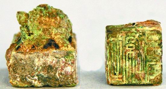 ????“我們當時在大鬧埠考古發(fā)掘中,無意間發(fā)現(xiàn)了一個很小的青銅器。”王館長介紹說,他們發(fā)現(xiàn)這個青銅器時上面全是泥土,后來整理發(fā)現(xiàn),這是個直徑只有2厘米的方形青銅印章,其頂部為龜形。