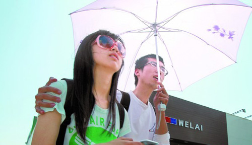 ????午后,艷陽高照,陽光刺得人睜不開眼睛,市民高女士告訴記者,因為沒采取防曬措施,她的臉被曬得通紅,擔心可能被曬傷了。
