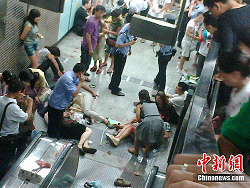 ????記者:剛才我和一位受傷者的家屬也進行了溝通,那位傷者說話的時候很吃力,家屬告訴我說他當時趕來的時候他自己的愛人告訴他是因為上行的電梯突然之間進行了倒轉,就是說本來是往上走的電梯,突然之間進行了下滑,導致了很多人防不勝防,因為如果是電梯停駛的話可能后果不會如此的嚴重,因為大家都在朝上走的時候,電梯突然間往后面倒退可能是導致這一次事故的原因。