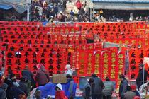 ??? 在李村大集一個手工刺繡的攤位前,家住市南區福州路的市民張女士看得非常帶勁兒,“現在年味兒越來越淡了,只有看到這些東西才能找到以前過年的感覺。 ”“刺繡的針4塊錢一套,繃子9塊錢一套,現在年近了,一天能賣個三四十套,”攤主吳大爺今年62歲,干手工刺繡的活兒已經三十幾年了。經過吳大爺的穿針引線,一幅仕女圖便栩栩如生地展現在面前,引得趕集市民紛紛駐足觀看。  ???李村大集上的各種民俗年貨都十分搶手 ????在一處卡子攤位前,攤主被購買者圍得水泄不通,卡子形態各異,有元寶形的、魚形的、花籃形的……“每到春節,我老伴都要給孫子做小金魚、小花卡子吃,這不來大集上買回去給孫子做著吃。 ”一名市民樂呵呵地說。 ????在一個挨一個的攤位中,記者發現了不少賣年糕的。一名四十歲左右的男子腰上系著白色的圍裙,正在麻利地給一位老大爺切年糕品嘗。大爺吃著嵌滿紅棗、熱氣騰騰的年糕,連聲說:“真好吃!稱上一塊! ”大爺說,過年家家都要有年糕,如果自家不蒸,就會上集買,“年糕年糕,一年更比一年高”。 ????此外,王哥莊大饅頭、香案、宗譜、春聯、蠟燭等各種民俗年貨,大集上都能看到,并且十分搶手。 ????炒貨升級 ????在李村大集上賣了10多年干果的孫大姐告訴記者,“往年都是花生瓜子占大頭,但是今年開心果、松子、腰果等高檔干果價格比去年不但沒漲價反而降價了,因此代替了花生瓜子在市民餐桌上唱主角。 ”孫大姐說,“最近這一個周我每天能賣一百斤開心果,五六十斤松子,”孫大姐說,每年農歷的臘月二十五到三十是炒貨銷量最好的時候,常常賣到最后會斷貨。 ????正在購買開心果的一位市民告訴記者,過年一家人聚在一起,炒貨是必不可少的。 “開心果、腰果、松子各買了50塊錢的,然后看看孩子喜歡吃什么,再多買點水果、糖果之類的東西。 ” ????碗筷雞魚蘊藏美好企盼 ????如今,添置新碗筷等廚房用具的傳統,還是在不少人家里延續,在集上轉轉,鍋碗瓢盆等家用品區域也擠滿了詢價的消費者。 ????記者在李村大集一家品種較多的攤位前看到有各式碗筷,碗以素雅的瓷碗為主,筷子以紅色的竹筷為主。攤主張女士告訴記者,因為現在還延續著“添碗”“添人”的說法,所以很多市民要選購新碗筷,一天下來她能賣2000多元的貨。 ????在生禽海鮮區,一些大爺大娘或者大嫂們用筐或編織袋拎了自家散養的笨雞擺在路邊賣,每公斤賣到40元,而且非常搶手。一位姓楚的市民拎著剛買的兩只紅公雞,高興地說:“‘雞’諧音‘吉’,過年嘛,買兩只雞吃,再燉上栗子,圖個大吉大利。 ”因為周圍有水庫的緣故,李村集市上賣大魚的特別多。記者來到鮮活魚市,看到一個個大水具里,盛滿了鮮活的大鯉魚,最大的超過15公斤,一般的也有5公斤左右。據一名姓張的魚販介紹,過年的時候,人們愛吃大魚,“當然,人們過年買大魚也是圖個吉利,‘年年有余’嘛。 ”樸素的傳統中蘊含著老百姓對生活的美好企盼。 ????自制香油現磨現賣 ????“老板,給我裝兩斤香油,再給我拿一瓶芝麻醬?!弊咴诖蠹?,一陣香味撲鼻而來。不少市民正在圍著一個攤位選購香油。門前的一位工人正在把炒熟的芝麻放進榨油機里,忙得不亦樂乎。攤主張永芳告訴記者,他祖上就是做香油的,后來國家允許個體經營后,他就干起了賣香油的買賣,在李村大集上已經賣了24年的香油。生意做大后,他也淘汰了原來的小手工石磨,用上了現代的榨油機?!伴T口的這臺是國產的,用土法榨油;屋里面的那臺機器是韓國進口的,用國外的辦法榨油,”老張說,雖然方法不一樣,但榨出來的油味道相差并不大。 ????“別看這個香油賣22一斤,我可是每次都要到這里買,他們家的油都是現榨的,味道香著呢,”一位市民說,過年吃膩了大魚大肉,買點香油回去調個涼菜,清爽可口。(賈臻/文 王瑜/圖) |