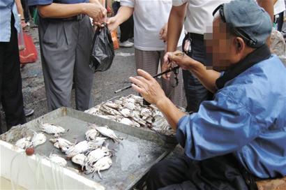 記者當天又趕到了埠西市場、櫸林山市場暗訪。在埠西市場,記者先購買了一斤七兩的八帶,復秤夠秤。記者又購買了兩斤黃花魚和四斤青板魚,一一復秤都夠了。一些業戶告訴記者,他們最近都看到早報的報道了,“我們這里不像其他地方耍秤,講誠信才能招來回頭客。”