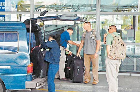 在中國政府壓力下,美國只愿意為臺灣現有F-16做升級。圖為美空軍執行臺灣F-16戰機性能提升項目小組成員,2010年11月22日搭機抵達花蓮,臺灣空軍派遣專車接送。來源:中新網