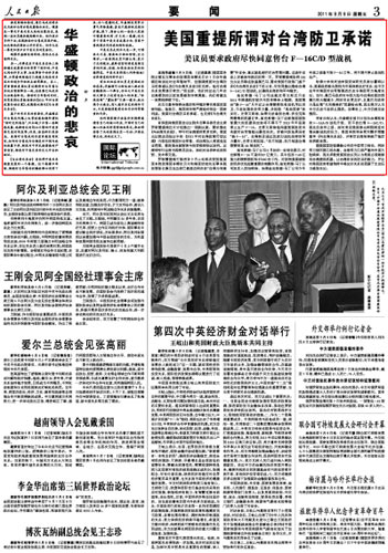提示:《人民日報》9月9日(星期五)在三版發(fā)表署名“鐘聲”的評論文章,用強力措辭向美國發(fā)出警告稱,那些希望將先進武器賣給臺灣的美國182位“國會山狂人”正在玩火,可能付出慘重的代價。