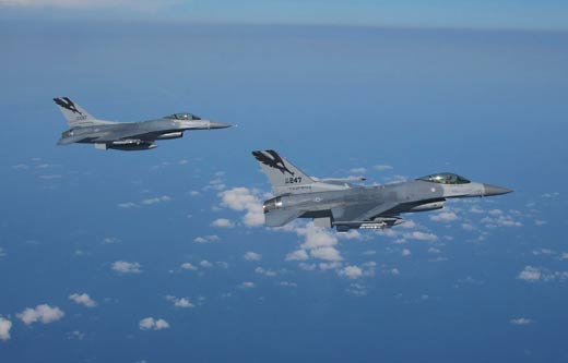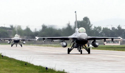 F-16和殲-10同屬于第三代戰(zhàn)機,性能比較接近。圖為韓國空軍的KF-16戰(zhàn)斗機。(資料圖)