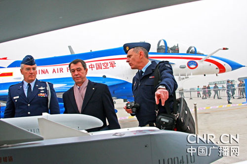 2009年11月,大批外國軍官參觀殲-10等中國新型戰(zhàn)機。(中國廣播網(wǎng)圖片)