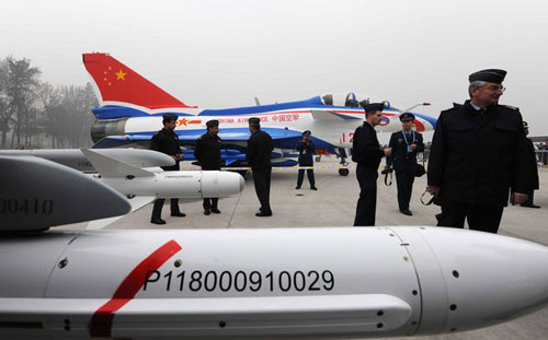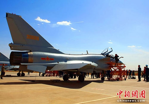 2009年11月,外國軍官集體參觀殲-10等中國新型戰(zhàn)機(資料圖)