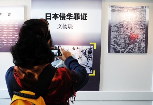 9月17日,參觀者在拍攝展品。當日,為紀念“九一八”事變80周年,長春市偽滿皇宮博物院推出日本侵華罪證文物展,通過展示100余件文物及歷史照片,揭露了日本侵華罪行,警示人們銘記歷史,珍愛和平。新華社記者常亦殊 攝