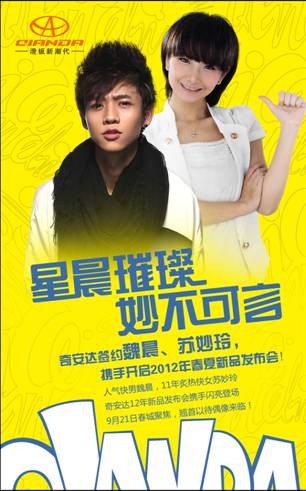 牽手魏晨蘇妙玲,奇安達劍指新生代消費群 調查顯示,13~26歲的新生代消費者已經上升為國內運動潮流消費群體的主力軍,他們更強調創意、個性和潮流,追逐更酷、更時尚的體育品牌,更容易在偶像的驅動下進行時尚消費。 “快女快男”作為中國最典型的娛樂符號,從中走出的明星備受新生代的追捧。2011快女新晉四強——“淡定姐”蘇妙玲便是當前最火熱的新生代偶像,她以其獨具特色的中低音聲線、干凈清新的外形和淡定優雅的臺風,被稱為最有氣質的快樂女聲,備受年輕觀眾追捧。而美男魏晨是2007年快男季軍,帥氣陽光的外表,加上迷人帶點大孩子氣的笑容,是名副其實的少女殺手。2010年,魏晨演出《一起又看流星雨》,讓他事業再上新高峰,并成為85后、90后爭相追逐的新生代偶像。 應對目標消費人群的變化,奇安達將以全新的代言人陣容推動品牌戰略的強勢升級,借助新生代美男魏晨和蘇妙玲的超強影響力,在年輕人群中樹立奇安達潮流酷炫的品牌形象,在延續和強化奇安達潮流運動理念的同時,實現品牌年輕化,搶占新生代體育運動用品市場。