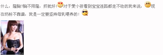 “什么,隆胸?胸不用隆,擠就好!對于愛小孩看到寶寶連路都走不動的我來說,現在奶粉不靠譜,我是一定要堅持母乳喂養的!”