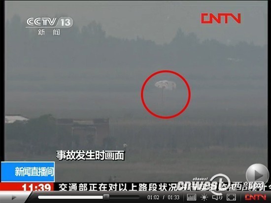 14日上午,2011中國國際通用航空大會在陜西蒲城舉行飛行表演時,一架飛豹戰機出現意外墜機,人員傷亡不詳,目擊者看到有人跳傘。資料顯示,飛豹戰機來自A股上市公司西飛國際。