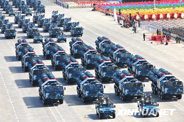 資料圖:紅旗-9地空導(dǎo)彈方隊接受檢閱。