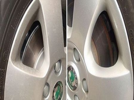 蒙先生車輛輪轂(右)和同一型號新車輪轂對比