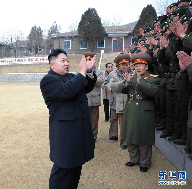 朝中社1月1日提供的照片顯示,朝鮮人民軍最高司令官,朝鮮黨、國家和軍隊的最高領導人金正恩(左)1月1日視察了朝鮮人民軍第105坦克師,向人民軍官兵致以新年祝賀。這是金正恩就任朝鮮人民軍最高司令官之后首次視察人民軍部隊。圖片來源:新華網
