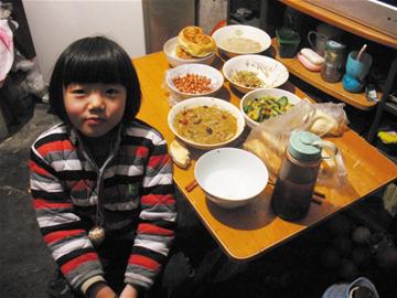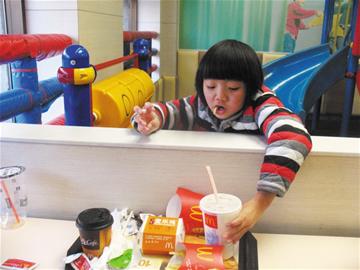 ![]() ????當身邊同齡孩子賴在父母身邊,為選擇吃薯條還是吃雞翅而煩惱時,7歲女孩杭杭卻躲在快餐店二樓的墻角,低頭吮吸著已經半空了的番茄醬,抗拒著身邊各種美食帶來的誘惑,只有在所有客人都離開后,小杭杭才會從他們的盤子里撿出剩下的三兩根薯條、小半杯飲料開心地吃喝著。更多的時候,小杭杭都低頭看著窗外,掰著指頭等清掃馬路的姥姥帶她回家。孩子,你怎么不去上學呢?昨天記者走近了小女孩杭杭的生活。 ????看著美食偷偷咽口水 ????跟著幾名同事到中山路上一快餐店吃漢堡,細心的張女士在快餐店二樓的角落里發現了一名孤單的小女孩,當其他的孩子都在父母的陪伴下,享受著各種各樣的美食時,這名小女孩卻只能瞪大了眼睛,看著身旁誘人的食物,偷偷地咽著口水,半個多小時,孩子的家人竟一次都沒有出現過。“孩子,你怎么一個人在這,你的爸爸媽媽呢?”看著這名可憐的小女孩,張女士不由想起了自己的女兒,她來到小女孩身邊,把她拉到自己的懷里,輕聲地問著。小女孩的回答讓張女士更加心疼,因為母親和姥姥姥爺沒有時間照顧她,就把她一個人留在快餐店里面,等著掃馬路的姥姥姥爺下午下班后,才會過來接她回家。張女士給孩子買來了食物,但離開后她始終忘不掉孩子可憐的模樣。“孩子應該去上學,而不是被留在快餐店里面,希望你們能幫幫孩子?!睆埮拷o早報打來電話說。 ????笑容背后隱藏著孤獨 ????記者來到中山路這家快餐店的二樓,在靠近兒童樂園的一處角落里發現了張女士描述的可愛小女孩,此時的她已經累得趴在小桌子上睡著了,桌子旁邊的盤子里堆著別人吃剩的一點食物,她身邊整齊放著她的羽絨服和一副綠色的小手套。記者不忍心打擾熟睡的孩子,但快餐店里的客人來來往往,小女孩還是被吵醒了,看到記者在拍照,小女孩有點不好意思地笑了,露出她缺了兩顆門牙的牙齒。 ????這名小女孩如同一個小精靈,在快餐店里蹦蹦跳跳地跑來跑去,她一直在笑,但在笑容的背后,記者卻能讀到一種孤獨??吹絼e的孩子在媽媽懷里吃東西,小女孩會立即扭過頭去,一臉嚴肅地看著窗外。看到別的孩子在媽媽的陪伴下進兒童樂園里玩滑梯,小女孩就會躲進玩具圓筒里或者滑梯底下,很長時間都不肯出來?!拔也幌M麄円粋€一個地來,來的小朋友多,玩起來才會有意思?!敝挥性诟鷦e的孩子一起玩的時候,小女孩才會變得開心,但看著別的小朋友一個個被爸爸媽媽領走,小女孩的臉上又會表現出一絲落寞。 ????說起媽媽眼里泛淚光 ????在兒童樂園里玩累了,小女孩悄悄來到記者跟前,笑著從記者的盤子里拿走了喝得只剩下一半的可樂,孩子大口地喝著,接著很滿足地哈了一口氣,她用黑亮的眼睛看著記者,顯得還有些不好意思。孩子經常吸著一小袋番茄醬,對她來說,這是她最容易獲得、也是最喜歡的零食。記者了解到,小女孩名叫杭杭,今年7歲了,原本跟爸爸媽媽住在杭州,大概一個月前才來到青島。 ????“我爸爸老是打媽媽。”吃著記者給她買來的薯條,小杭杭很快把記者當成了朋友,她趴在記者耳朵邊,悄悄地說著自己的小秘密,她媽媽帶著她離家出走,來到島城找到了掃馬路的姥姥、姥爺。小杭杭告訴記者,她的媽媽在很遠的地方賣衣服,她已經有很長時間沒跟媽媽說說話了,每天媽媽回家都很晚,媽媽回家時她已經睡覺了,早上起床跟姥姥、姥爺出來時,勞累的媽媽還沒有起床。說起自己的媽媽,小杭杭的眼睛里閃著淚光。 ????盼望過年能吃上漢堡 ????“我之前在快餐店里呆了3天,后來就一直被關在家里看電視,再后來我在家里沒意思,我姥姥就又把我帶來快餐店了?!毙『己几嬖V記者,剛來快餐店時她覺得很好玩,但在這里呆上一天,也會覺得沒意思。小杭杭告訴記者,姥姥、姥爺就在中山路上掃馬路,她經常站在窗口就能看到姥姥經過,姥姥、姥爺每天很早就出門,到了晚上天黑時才會來接她回家,中午的時候姥姥會來給她送吃的,有的時候在這吃飯的叔叔阿姨也會跟記者一樣,送吃的喝的給她。 ????“今年過年的時候,媽媽就會帶我去對面的快餐店,媽媽也會給我買漢堡和薯條吃,我跟媽媽都約好了。”小杭杭指著對面另外一家快餐店說,為了這個約定,小杭杭從來都不進馬路對面的快餐店,她每天站在二樓窗口上,盼著過年時,能跟其他小朋友一樣,跟著媽媽去好好吃一頓。 ????【探訪】 杭杭姥姥: 閨女鬧離婚 苦了外孫女 ????記者在中山路上找到了杭杭的姥姥杜大媽,這名來自臨沂的老人在打掃馬路時,會不時抬起頭看看快餐店的門口,她也害怕孩子會自己跑出快餐店遇到危險,每到休息時間,她都會上樓看看外孫女。“我閨女和女婿鬧離婚,可就苦了我這個外孫女了。”杜大媽告訴記者,在老家他們都是農民,幾年前來青島干環衛工。她閨女今年30歲,嫁到了杭州,給她生了兩個外孫女和一個外孫,杭杭是老二。杭杭的爸爸很能喝酒,喝醉后經常打妻子,有時候還動手打孩子,為此杭杭的媽媽還尋過短見。兩人實在過不下去了,杭杭的媽媽帶著孩子來島城,但杜女士夫婦經濟條件也不是很好,大人還好說,可就苦了孩子。 ????“我們也怕孩子被壞人拐了去,千叮萬囑不讓孩子離開快餐店,杭杭可懂事了,中午有好心人給了她個漢堡,她就咬了一口,非得留著給我吃。”杜大媽說。 ????杭杭媽媽: 借讀費太高 根本上不起 ????“我們也很想趕緊送孩子去上學,可我和父母都不是本地戶口,交不