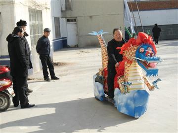 龍年到了,膠南市六汪鎮(zhèn)河北村74歲的趙宏榮花了兩個(gè)月時(shí)間,為自己制作了一輛用電動(dòng)車改裝的“龍車”。車身全長(zhǎng)3.3米,滿是金黃的麟片,用塑料雕成龍爪和龍身,燈泡制成可以閃亮的龍眼,車子開(kāi)動(dòng)時(shí),龍還會(huì)動(dòng),龍爪和龍尾會(huì)隨著車子顫抖,引得很多村民圍觀。 這輛車子花了一萬(wàn)多 在趙宏榮的家中,記者看到了這輛“龍車”。龍車全長(zhǎng)3.3米,龍的整個(gè)骨架使用鋼筋和三角鐵焊承起來(lái)的,龍骨的外面都是用鋁鐵板包起來(lái)的。龍鱗是一筆一畫的畫上的,然后再涂上黃色的油漆和白色的鱗邊,龍的眼睛是自家常用的燈泡外表涂了紅色的油漆制成,至于龍的牙齒和胡須都是趙宏榮用塑料一點(diǎn)一點(diǎn)雕出來(lái)。 趙宏榮雖然已經(jīng)七十多歲了,但是身體很好,在鎮(zhèn)上的水利站上負(fù)責(zé)看門。為了制作這條龍,趙宏榮白天怕打擾別人工作就只是畫設(shè)計(jì)圖、龍鱗,到了晚上值班的時(shí)候,自己拿著手電鉆轉(zhuǎn)眼,焊鋁鐵板,經(jīng)常干到晚上十二點(diǎn)。為了制作這條龍,趙宏榮自己掏錢買了臺(tái)電焊機(jī)自己焊龍車骨架,安裝用的螺絲是一趟趟坐車去膠南買的,趙宏榮在六汪鎮(zhèn)上住,往返膠南市區(qū)一趟就要花二十多元,花錢不說(shuō),時(shí)間也是耽誤不少。 當(dāng)問(wèn)到做這條龍花了多少錢的時(shí)候,趙宏榮悄悄說(shuō)“總共花了一萬(wàn)多。”“這事不敢讓老伴知道,她是個(gè)很過(guò)日子的人,知道了會(huì)很心疼的。農(nóng)村人誰(shuí)會(huì)舍得花這些錢就為了做條龍呢,這筆錢我攢了三年! ” 平常愛(ài)寫“龍”對(duì)聯(lián) 說(shuō)到制作龍的初衷,趙宏榮的理由很簡(jiǎn)單,“今年是龍年”。趙宏榮笑呵呵的告訴記者,他每年都賣春聯(lián),村里有喜事也會(huì)讓他去寫喜聯(lián),多半都是寫“龍鳳呈祥”、“麒麟送子”一類的祝福,所以特別喜歡龍。 趙宏榮自豪的告訴記者:“說(shuō)到賣春聯(lián),村里沒(méi)有不認(rèn)識(shí)我的。以前我都開(kāi)手扶車到幾十里外的地方去賣春聯(lián),現(xiàn)在上年紀(jì)了,走不了那么遠(yuǎn)就在自己鎮(zhèn)上的大集上賣。 ”趙宏榮平日里也愛(ài)好書(shū)法和畫畫,用村民的話說(shuō)他也是個(gè)“文化人”。據(jù)說(shuō)在當(dāng)時(shí)村公社的時(shí)候還參加過(guò)教育展覽館的設(shè)計(jì)。 今后還想做條“麒麟” 龍車做好后,趙宏榮騎著龍車還去親戚家轉(zhuǎn)了轉(zhuǎn)。 “出去的路上,很多村民圍著看,小孩子見(jiàn)了特別稀罕。 ”趙宏榮透露,其實(shí)自己特別想做麒麟。因?yàn)橘Y金的原因,這個(gè)打算只是暫時(shí)往后拖拖。 “雖然我年紀(jì)大了,可心里還是很年輕。如果條件可以,我會(huì)做努力做些自己想做的事情。” |