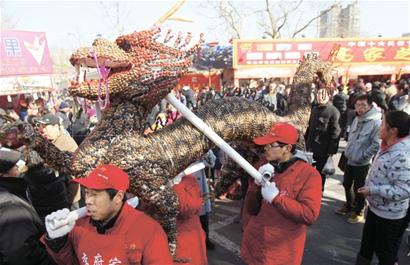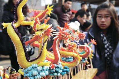 昨日,海云庵糖球會(huì)開幕進(jìn)入第3天,記者采訪發(fā)現(xiàn),在糖球會(huì)趕會(huì)的民俗藝人和糖球攤紛紛打出“龍”招牌,糖球龍、糖畫龍、面塑龍、草編龍……只要沾上“龍”元素,銷量立刻節(jié)節(jié)攀升,成為搶手貨。據(jù)介紹,昨日糖球會(huì)共接納游客約19萬人,糖球、小吃等商品成交金額達(dá)750萬元。 糖球攤擺出“龍門陣” “二龍戲珠”“祥龍納?!薄褒埶秃眠\(yùn)”……記者在糖球廣場采訪發(fā)現(xiàn),街心花園周邊的糖球業(yè)戶迎合龍年的彩頭,紛紛在自家攤位前用山楂搭設(shè)起龍形雕塑,有的攤位還制作出龍形糖球?!斑@個(gè)二龍戲珠糖球是今年才開發(fā)的,給市民討個(gè)好彩頭。”記者在高家糖球攤看到,一種名為“二龍戲珠”的糖球很受趕會(huì)市民歡迎。山楂串成的糖球頂端插了一個(gè)黃色的圣女果,而圣女果兩側(cè)盤著兩條草編的小龍?!斑@樣的糖球拿在手里都不舍得吃。”一名市民買了一支“二龍戲珠”糖球,表示要拿回家,讓家人看個(gè)新鮮,然后再吃?!疤乔蚝贸赃€得有觀賞性?!备呒姨乔虻母呤肯娓嬖V記者,糖球邊上的兩條草編小龍是他們請草編藝人專門編的,糖球吃完了,兩條小龍還可以拿下來擺在家中起裝飾作用。李府糖球和劉家花樣糖球則在門前擺出用山楂做的生肖龍,山楂、山藥豆、酸棗、圣女果……都成了制作生肖龍的材料。 民俗攤“群龍”舞動(dòng) 糖球廣場一排10多個(gè)民俗攤位上,草編龍、糖畫龍、面塑龍、泥塑龍等各種樣式的“龍花樣”讓人如同進(jìn)入龍世界?!敖衲晔驱埬辏ツ晗掳肽晡揖烷_始著手研究如何用面塑做龍了?!?0歲的杜文森手里捏著一團(tuán)彩色面團(tuán),左捏右捏,用了十幾分鐘,一條活靈活現(xiàn)的“飛龍”就誕生了。杜文森告訴記者,他19歲開始學(xué)習(xí)面塑制作,之后的20多年全靠面塑賺錢養(yǎng)家。因?yàn)榻衲甑霓r(nóng)歷龍年,為在糖球會(huì)上能拿出像模像樣的面塑龍,他在家找出30多年前《哪吒鬧?!返男∪藭凑绽锩纨埻醯臉幼铀茉斐鰬蛑辇垺[尾龍、探寶龍等9種造型的面塑龍。 糖畫師傅關(guān)景帝從擺下攤開始就忙得連頭也不抬,他最暢銷的糖畫就是“大龍”。一小勺糖稀在他手中繞來繞去,不到兩分鐘,桌面上就出現(xiàn)一條金光閃閃的糖龍。“大龍20元一個(gè),其他花樣10元?!彪m然糖龍價(jià)格翻番,但前來買糖龍的市民絡(luò)繹不絕?!巴媚戤嬐谩埬戤孆垼@是做糖畫歷來的規(guī)律?!标P(guān)景帝告訴記者,糖龍花樣是跟師傅學(xué)徒時(shí)必須要學(xué)的,之后隨著自己在全國四處趕會(huì),眼界不斷開闊。 |