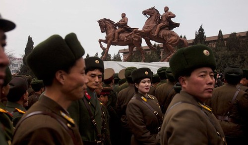 朝鮮豎起首座金正日銅像 資料圖 ????新華網平壤2月15日電 據朝中社15日報道,朝鮮勞動黨中央委員會、黨中央軍事委員會、朝鮮國防委員會、朝鮮最高人民會議常任委員會14日決定,向已故最高領導人金正日授予朝鮮民主主義人民共和國大元帥稱號。 ????決定說,金正日加強和發展金日成大元帥創建和勝利領導的朝鮮人民軍,光榮地維護了社會主義祖國和民族的命運,為世界和平與穩定作出了不朽貢獻。金正日以戰無不勝的“先軍”革命領導把朝鮮轉變成為軍事強國,為祖國和革命建立了永不磨滅的豐功偉績。 ????朝鮮已故國家主席金日成1992年曾被推舉為朝鮮民主主義人民共和國大元帥。 另據報道,勞動黨中央軍事委員會、朝鮮國防委員會15日宣布向人民軍總政治局第一副局長金正閣授予次帥稱號。朝鮮人民軍最高司令官金正恩當天發布命令,向黨中央書記樸道春、人民軍上將金英哲授予大將軍事稱號,向黨中央部長朱奎昌、國防委員會委員白世峰、勞動黨中央委員金松哲授予上將軍事稱號,向人民軍東海艦隊司令金明植等18人授予中將軍事稱號。 |