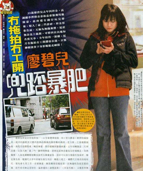 據(jù)香港媒體報(bào)道,33歲廖碧兒去年因拜金,高調(diào)搭上李澤楷表弟林忠豪而狠撇陳豪,最終遭有錢(qián)仔玩完即棄,巡用語(yǔ)“豪”門(mén)夢(mèng)碎,拜金形象負(fù)面,又淪為無(wú)線棄將,迫于無(wú)奈北上掙錢(qián),要惜因在內(nèi)地知名度欠奉,全年只拍了一部劇,近月無(wú)拖拍沒(méi)工開(kāi)滯留在港,百無(wú)聊賴暴吃令身形發(fā)脹走樣。