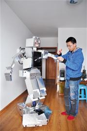 機器人不僅能自己說話,和人互動,還能進行唱歌和跳舞等表演。膠州27中學初三學生裴翌翔,在老師和父親指導下,造出一款大型智能表演機器人。下個月這臺機器人將參加青島市27屆青少年科技創新大賽,目前正申請國家專利。 大個子機器人是“舞王子” 昨天,裴翌翔展示了自己的作品:伴著音樂,機器人轉動頭部,張開雙臂,雙腿下蹲,轉身,神奇地跳起舞來。機器人身高1.75米、自重75公斤,合金鋁的骨骼,鋁板外殼,直流供電。全身18個關節電機。它的上身可以左右,前后轉動;雙臂和手可作仿真運動,雙腿可以站立和下蹲。機器人的雙腳由一個形狀為飛船狀的小車構成,小車有電瓶為機器人供電,機器人可以自動隨意行走和轉向。更為神奇的是機器人胸部有圖文屏,插上U盤,這個圖文屏就可以放電影和錄像。 花了一年多才研制成功 “我設計這個機器人的初衷是看到國外設計的機器人能表演,給人們帶來歡樂。”翌翔告訴記者,他的想法得到了爸爸的支持,車床工作由爸爸代勞,機器人構思和編程都由自己完成。翌翔的父親裴偉勝說,孩子從小對電子制作感興趣,目前已經熟練地掌握了多種編程技術。經過了一年的制作,翌翔終于將一個完整的智能表演機器人制作成功。 希望機器人能夠商演 “下個月我兒子將帶著這款智能表演機器人參加科技創新大賽。”父親裴偉勝告訴記者,孩子已獲今年市科協舉辦的創新大賽參賽資格,下周將把作品寄往評委會進行評選。目前,小翌翔正在對這款智能表演機器人的一些小細節進行處理,繼續完善機器人的功能。 裴偉勝告訴記者,這個機器人可以進行公益性宣傳、企業宣傳和產品推廣等活動,也適用于在各種大小型集會上進行文化性質的表演和商業性演出,在比賽完之后他將為兒子制作的這個機器人申請國家專利。 據了解,翌翔連續三年參加科技創新大賽,每年的作品都是機器人。他的作品主要有“機器人小秘書”、“能制止犯罪、預報災害的智能機器人”和“讓下肢癱瘓的人重新直立行走和康復的機器人”,是個名副其實的“機器人專業戶”。 |