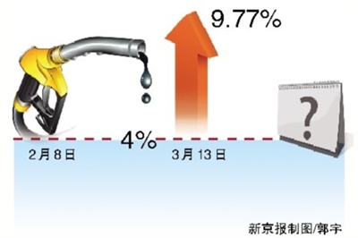 蔣潔敏昨日對媒體表示,“我的感覺應該調了,畢竟過了22個工作日,現在整個的浮動也超過了10%”。市場人士對此信號也反應強烈,并預期“兩會”結束后油價極有可能馬上上調。更有市場機構的監測顯示,目前包括兩大石油公司在內的不少油商都已開始停止大單銷售,靜待價格上漲。