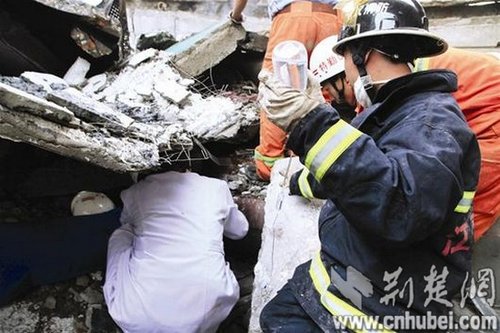 圖為:女醫(yī)生吳春平在廢墟中搶救傷員 ????昨日13時許,武漢市江夏區(qū)佳成生物制品公司一反應釜因壓力過大發(fā)生爆炸,造成生產(chǎn)車間垮塌??逅鷱S房為2層框架結構,坍塌面積150平方米。事故現(xiàn)場共28人。經(jīng)多方組織搶救,至當日19時,有26名傷員在醫(yī)院救治(其中2人傷勢較重),2人經(jīng)搶救無效死亡。 ????事發(fā)后,省委、省政府高度重視,李鴻忠書記、王國生省長等領導立即作出重要批示,要求全力搜救被埋人員,積極組織救治傷者,妥善做好善后工作,并抓緊調(diào)查事故原因,舉一反三,吸取教訓。同時立即安排省政府分管領導趕往現(xiàn)場指揮事故救援工作。武漢市主要領導在現(xiàn)場組織處置救援和善后工作,并成立了相關工作組。目前,醫(yī)療救治和善后處置工作正緊張有序進行。 現(xiàn)場目擊:爆炸碎屑飛上22樓 佳成生物公司主要生產(chǎn)食品酵素,車間內(nèi)有高溫高壓反應釜??逅鷱S房為2層框架結構,坍塌面積150平方米。 記者昨日下午2時許趕到現(xiàn)場看到,該公司大院內(nèi),一棟3層高的樓房正冒著白煙,屋頂?shù)蔫F皮被炸開幾個大洞,周邊幾棟樓的玻璃幾乎全被震碎。 在與該公司一墻之隔的“博雅豪庭時尚街”住宅樓,記者進入一戶22樓的居民家中。這名業(yè)主家的陽臺上,落滿了爆炸沖擊波帶來的碎屑。業(yè)主介紹,當時只聽“轟”的一聲,一個巨大的火球從廠房冒出,然后,一大團蘑菇云狀的濃煙沖上天。 佳成公司院內(nèi),有滿臉是血的員工跑出來報警。幾分鐘后,消防車和救護車呼嘯而至。 傷者講述:氣浪把人掀倒在地 傷員被第一時間送至江夏區(qū)人民醫(yī)院,嚴重燒傷和燙傷的傷員,被立即轉院送往市區(qū)大醫(yī)院。廣州軍區(qū)武漢總醫(yī)院、武漢大學中南醫(yī)院、武漢市三醫(yī)院,紛紛抽調(diào)力量展開搶救。 “我被爆炸氣浪沖開,從二樓滾到一樓……”在中南醫(yī)院搶救室,20歲的女孩小蘭向記者描繪了爆炸時的驚心一幕。當時,她在二樓干活,爆炸發(fā)生后,磚混結構的廊沿和走廊玻璃全部被氣浪掀倒,她也被掀到樓下地面,手部等處被磚塊和玻璃砸傷。 全力救援:生命探測儀上陣 爆炸導致多名傷者埋在瓦礫廢墟中,來自醫(yī)院、消防等部門的救援人員爭分奪秒甚至動用生命探測儀展開施救。 據(jù)現(xiàn)場救援的消防人員介紹,爆炸后的廠房立柱斜歪,二樓的鐵架子墜下來,懸在半空,滿地的玻璃錐瓶,走路都沒下腳之地。一名救援人員鉆進廢墟深處,用生命探測儀發(fā)現(xiàn)一名男子被卡在里面,只露出光頭和一只手,發(fā)出微弱的呼救聲。 在外待命的江夏區(qū)人民醫(yī)院女醫(yī)生吳春平立即往里沖,消防員攔住她,給她戴上消防頭盔。吳春平只身來到廢墟下,身邊就是一根斷管子,正在泄漏冒出白煙,現(xiàn)場氣味非常嗆人。她鉆進斷壁之下,給被困男子戴上呼吸面罩輸氧,并讓一旁的消防員幫忙捏著鹽水瓶,她壓低身子,幾乎貼著地面給男子打吊針。 經(jīng)過十幾分鐘現(xiàn)場施救,被困男子終于緩了過來。 昨晚7時許,該名男子被成功救出,廣州軍區(qū)武漢總醫(yī)院介紹,男子傷勢較重,右小腿不得不截肢。 |