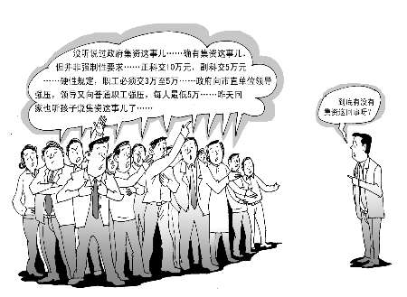 近日,新鄭市不少公職人員向商報(bào)爆料稱,該市建生態(tài)廊道,每人至少集資1萬 有人稱,政府因社會(huì)公益項(xiàng)目貸款集資可以理解,但要遵循自愿原則 不少人表示不滿:哪來的錢集資啊,可憐的上班娃們 ????政府辦、宣傳部稱沒這事兒教育部門稱確有此事,但并非強(qiáng)行集資:哪個(gè)領(lǐng)導(dǎo)也不會(huì)干這傻事兒 ????近日,新鄭市直機(jī)關(guān)、事業(yè)單位員工不斷向河南商報(bào)爆料,稱該市建生態(tài)廊道,公職人員都有集資任務(wù)。普通職工少則1萬元,多則數(shù)萬元。 昨天下午,新鄭市政府辦、市委宣傳部相關(guān)負(fù)責(zé)人均表示:沒聽說過政府集資的事兒。 而該市教體局則證實(shí),確有集資這事兒,但并非強(qiáng)制性要求。 爆料 政府建生態(tài)廊道 市直機(jī)關(guān)每人交3萬 昨天,新鄭某高中一位不愿透露姓名的教師說,校領(lǐng)導(dǎo)在例會(huì)上宣布,新鄭修路需26億資金,該校有150萬元任務(wù),每位教師在28日上午11點(diǎn)前至少交1萬,多則不限?!罢平?0萬元,副科交5萬元,教體局副局長也得交10萬元?!?/p> 消息公布后,很多人表示不能接受。 “這錢是捐款還是借款?如果是借款,什么時(shí)候還?”一位教師說,學(xué)校負(fù)責(zé)人只提到,籌集1萬元錢,1年期利息每月1分2,2年期利息每月1分3。 該校一位負(fù)責(zé)人證實(shí),籌款確有其事,是上級(jí)部門口頭通知的,沒正式文件。全市公職人員都有任務(wù),而且必須得交,不清楚這筆錢以后退不退。 新鄭市某市直單位一職工稱,市直各單位員工每人要集資3萬元,聽說是為了鄭新快速路兩側(cè)的生態(tài)廊道建設(shè)。 3月25日,新鄭貼吧內(nèi),很多網(wǎng)友就籌款一事,傾吐心中不滿。網(wǎng)友“頭發(fā)快掉光”說,全市單位集資啦,硬性規(guī)定,職工必須交3萬元~5萬元。 網(wǎng)友“隨園的主人”說:剛上班一個(gè)月,還沒有領(lǐng)到一毛錢,哪來的錢集資啊,一人3萬,玩人啊,可憐的上班娃們。 鄭州市網(wǎng)絡(luò)問政平臺(tái)上,網(wǎng)友“政府關(guān)注者”說,“政府因?yàn)樯鐣?huì)公益項(xiàng)目貸款集資,可以理解,但要遵循自愿原則。政府向市直單位領(lǐng)導(dǎo)強(qiáng)壓任務(wù),領(lǐng)導(dǎo)又向普通職工強(qiáng)壓,每人最低5萬,我們單位領(lǐng)導(dǎo)都蒙了,連自籌的員工工資都停發(fā)了?!?/p> 另據(jù)了解,新鄭市直機(jī)關(guān)、事業(yè)單位集資款,統(tǒng)一交到新鄭市農(nóng)村商業(yè)銀行股份有限公司營業(yè)部,賬戶名稱為新鄭市政通投資控股有限公司。 回應(yīng) 政府辦說沒這事兒,教體局稱有集資但是自愿的 對(duì)于讀者和網(wǎng)友投訴的“強(qiáng)行集資”一事兒,新鄭方面予以否認(rèn)。 “沒聽說過??!不會(huì)有這事兒吧?”昨天下午,新鄭市政府辦主任張書謙說。不過,他又透露,其孩子在新鄭一所中學(xué)上班,“昨天回家也聽孩子說集資這事兒了”。 新鄭市教體局局長陳文彬說,這不是捐款,而是政府吸納資金,利息比銀行高,“如果有錢且愿意的話,可以借給政府,沒錢就算了?!?/p> “文明發(fā)展到今天,哪一級(jí)、哪個(gè)領(lǐng)導(dǎo)也不會(huì)干這個(gè)傻事兒!”陳文彬告訴記者,教體局絕對(duì)不可能下達(dá)強(qiáng)行集資的任務(wù)。 新鄭市教體局常務(wù)副局長柳廣義說,籌集資金是財(cái)政部門要求的,用于新鄭部分道路的廊道建設(shè),完全是自覺自愿行為。 隨后,記者致電新鄭市財(cái)政局求證此事,對(duì)方掛掉了電話。新鄭市委宣傳部副部長梁國定則表示,他還沒聽說這回事。 |
