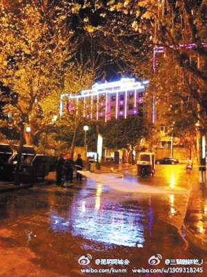 清潔工人正用水沖洗街道微博截圖 昨天,網友“三顆貓餅乾_J”報料:“昨晚深夜,彝良縣用自來水沖洗大街,目的是為了‘一個會議’而迎接‘領導’,珍貴的水沖大街,街道是沖干凈了,可是你們可想過那么多水能夠灌溉多少農田,心寒。” 從彝良縣有關方面了解到,4月4日晚上,彝良縣確實用自來水沖洗過大街。 網友曝:用自來水洗大街 4日晚上11點35分,網友“三顆貓餅乾_J”在新浪微博上發帖說:“我現在在彝良,晚上11點20分,在全省水資源緊缺,農田灌溉用水不足的情況下,他們卻為了一個會議‘迎接領導’,大晚上的用珍貴的水沖大街,街道是沖干凈了,可是你們可想過那么多水能夠灌溉多少農田,心寒。”帖子中還貼出了圖片。這張夜景照片顯示,街道上有大量積水。 這條微博發布后,迅速引起網友圍觀。網友多在猜疑,此事是真是假。 昨天下午,從彝良縣居民口中證實了這一說法。彝良縣當天晚上確實有環衛工人用自來水沖洗大街的事情發生。一名居民說,那些環衛工人很晚都在沖洗大街,但不知道近期是不是有什么大型會議。 縣委宣傳部:不存在該現象 近期彝良縣是否有需要接待領導的會議?為什么要用自來水沖洗大街?帶著疑問,記者撥通了彝良縣政府辦的電話,對方讓找彝良縣委宣傳部外宣辦了解。 接著,記者撥通彝良縣委宣傳部外宣辦的電話。一名陳姓工作人員說,“早上的時候,也看不出街道是否被沖洗過,我不清楚具體情況。目前,彝良縣在搞舊城改造工作,一些城區街道灰塵比較大,可能有公司、個人灑水除塵。據我個人了解,不存在用自來水沖洗大街的情況。” 對于昨日或者近期內,彝良縣是否有重要會議或者迎接領導的會議?陳先生說“也不清楚”,隨后他補充說,“據我所知,大型的會議沒有,一些單位內部的常規會議是有的,但這些會議的重要程度達不到要沖洗街道來迎接。” 環衛中隊:用自來水洗大街是常事 昨日下午,記者撥通彝良縣城管大隊環衛中隊電話。有關人員肯定了4日晚上用自來水沖洗大街的事情:“從當晚八九點開始,環衛工人就用自來水沖洗彝良縣城的大街,到次日凌晨2點左右才沖洗完。” “當地經常用自來水沖洗大街,幾乎一周就要沖洗一次。當地自來水價格為1.8元/方,不過沖洗大街用的自來水,環衛部門不需支付費用。” “街上的污垢的確很難打掃干凈,是政府領導要求用水沖洗大街。”這名工作人員說,彝良縣用自來水沖洗大街的現象存在多少年了,已經不清楚到底是哪位領導的要求。 環衛中隊是否因迎接會議或者領導而要求沖洗大街?這名工作人員稱,并沒有接到相關通知。 彝良全縣抗旱形勢嚴峻 日前,“彝良在線”網站對彝良縣的旱情報道稱:據彝良水利局提供的農業旱情動態統計表等顯示,受持續干旱影響,彝良全縣15個鄉鎮已不同程度受災,其中角奎、洛澤河、海子、蕎山等河谷鄉鎮受災較重。受降雨少、水源缺乏、抗旱基礎設施薄弱等因素影響,全縣抗旱形勢仍十分嚴峻。 目前,彝良縣自來水供給情況怎樣?彝良縣自來水公司一工作人員說,受旱情影響,當地供水情況比較緊張,勉強能維持居民正常生活。今年3月初,因供水壓力大而對城區局部停過水。“環衛沖洗大街用的是我們公司的自來水,他們是從城內的消防栓里放出來的。” 既然自來水資源較緊張,為何還要用自來水沖洗大街?這名工作人員說:“聽說是領導安排用自來水沖洗街道,具體情況我就不清楚了。”(楊旭) |