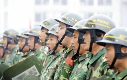 ????據介紹,民兵從接到指令那一刻起,必須停下手中工作,根據集結要求按時到達指定地點。在港務局港機廠集結的是市北區民兵的一支應急連隊和一支搶修分隊,共計145人。當記者9時45分趕到這一集結地點時,145名民兵已身穿迷彩軍裝和頭盔,手持盾牌、警棍設備完成集結。