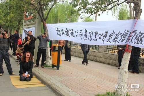 2012年4月14日上午,在河南省許昌市勞動(dòng)路體育場(chǎng)門(mén)口,該市某樓盤(pán)業(yè)主掛起挽聯(lián),請(qǐng)來(lái)專業(yè)哭喪隊(duì),“抗議”開(kāi)發(fā)商提價(jià)預(yù)售商品房,現(xiàn)場(chǎng)引來(lái)不少市民圍觀。在維權(quán)過(guò)程中,始終未見(jiàn)開(kāi)發(fā)商工作人員與業(yè)主溝通并解釋漲價(jià)原因。