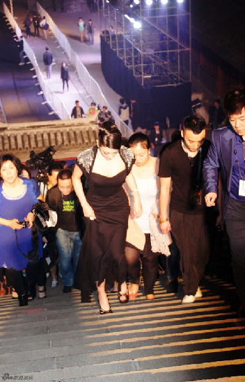 張雨綺低胸裝遭偷瞄 踩高跟鞋登臺階秀事業線(圖)